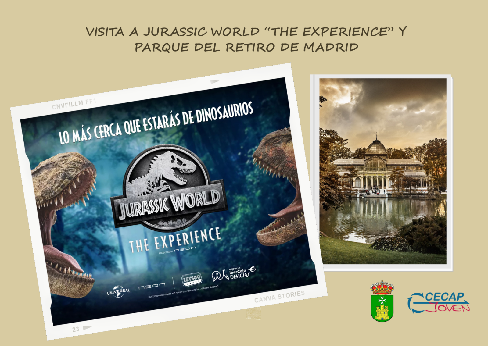 VIAJE DE DÍA COMPLETO A MADRID PARA CONOCER LA EXPOSICIÓN «JURASSIC WORLD. THE EXPERIENCE» Dentro del programa de actividades juveniles de verano, desde CECAP JOVEN, en colaboración con el Ayuntamiento de Consuegra, se ha organizado una salida especial a Madrid. Disfruta de un día completo en Madrid, disfrutando de la Exposición inmersiva de Jurassic World «The Exhibition»! INFORMACIÓN DE LA ACTIVIDAD