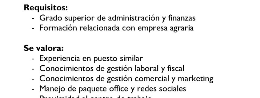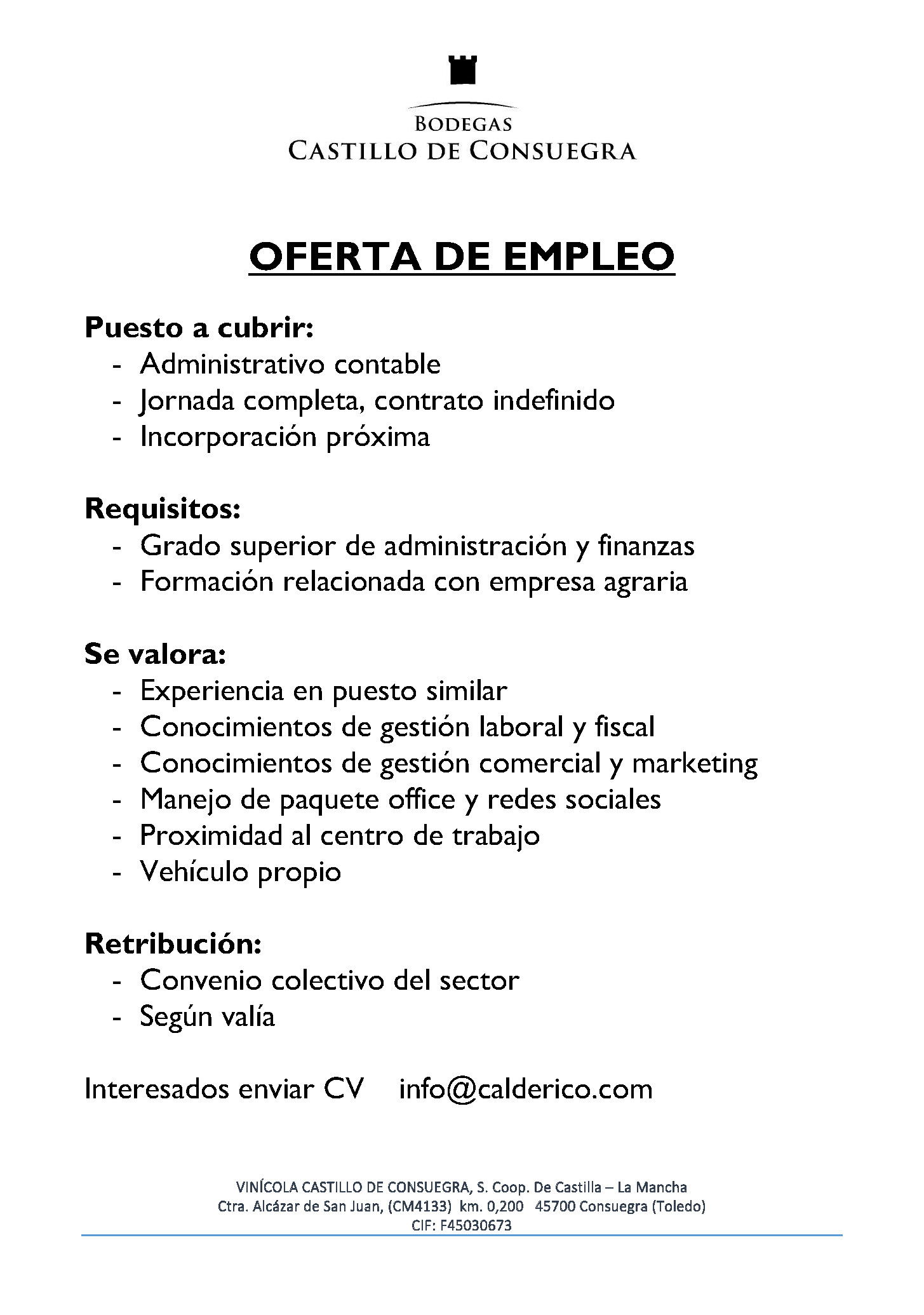 Oferta de empleo privado: Administrativo contable en Bodegas Castillo de Consuegra
