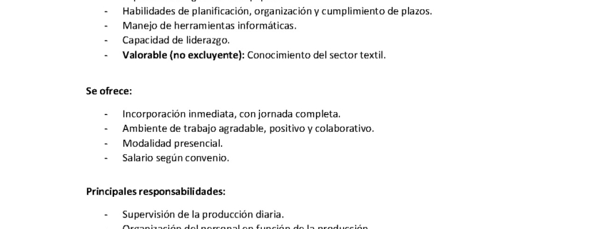 – Valorable (no excluyente): Conocimiento del sector textil.