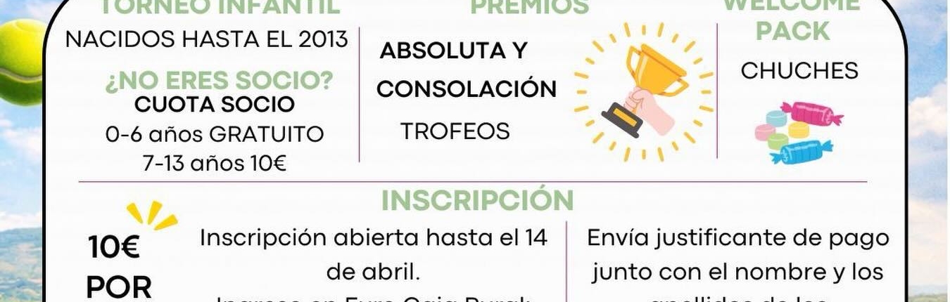 Nº de visitas: 119 Consuegra Padel Club con la colaboración de la Concejalía de Deporte del Excmo. Ayuntamiento de Consuegra, presenta torneo INFANTIL de primavera 2026. TORNEO INFANTIL DE PRIMAVERA DE PADEL 2026 Nacidos hasta el 2013. EXCLUSIVOS SOCIOS/AS 📆 Días 18 y 19 de abril. 🎟️ Inscripción: 10€ por pareja con una transferencia. Enviando … Sigue leyendo PADEL. Torneo de Primavera Consuegra 2026. INFANTIL