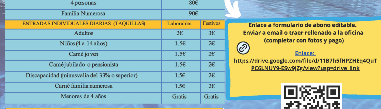 Piscina de Verano Consuegra 2025. Tasas por uso.