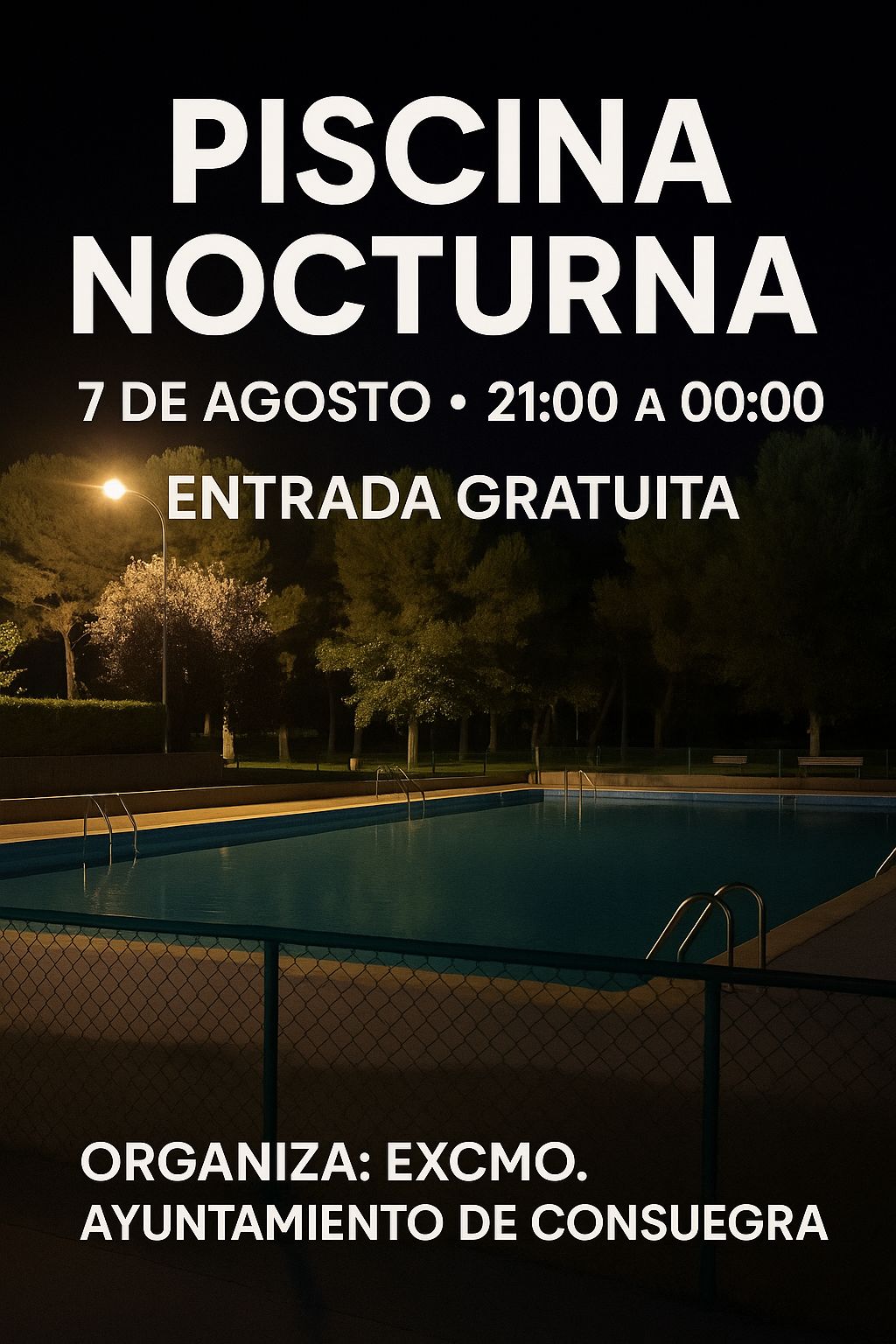 #PiscinaNocturna #VeranoEnConsuegra #NocheDePiscina #EntradaGratis #CuidemosLoNuestro #PiscinaMunicipal #AytoConsuegra