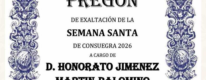 La Junta de Cofradías y Hermandades de Consuegra y la Parroquia de Santa María, y con la colaboración del Excmo. Ayuntamiento de Consuegra, entre la programación de los actos y cultos litúrgicos con motivo de la Semana Santa 2026, no podía faltar el Pregón de Exaltación.