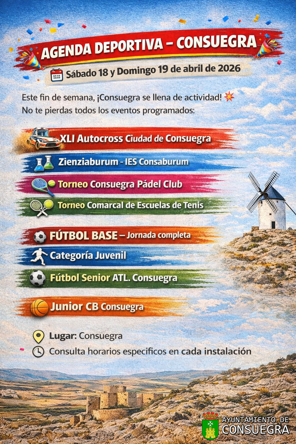 Eventos deportivos en Consuegra programados para los días 18 y 19 de abril.