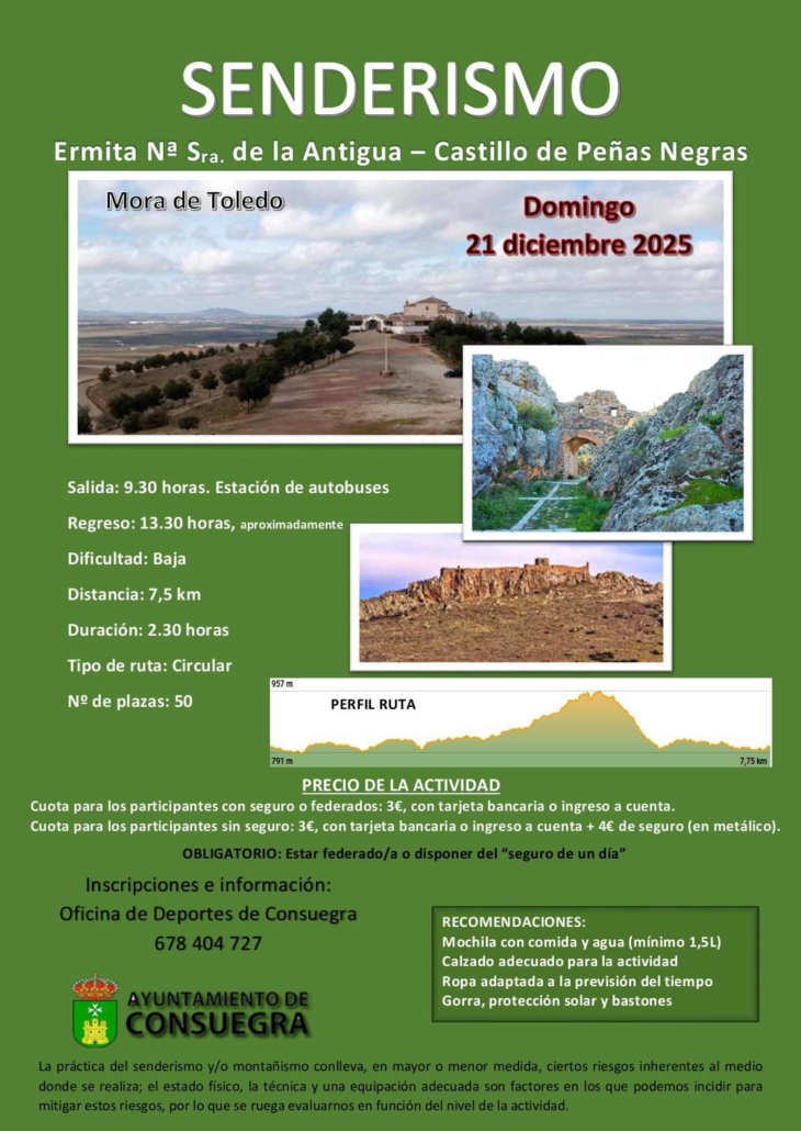 El Área Municipal de Deportes del Ayuntamiento de Consuegra organiza la siguiente ruta senderista,