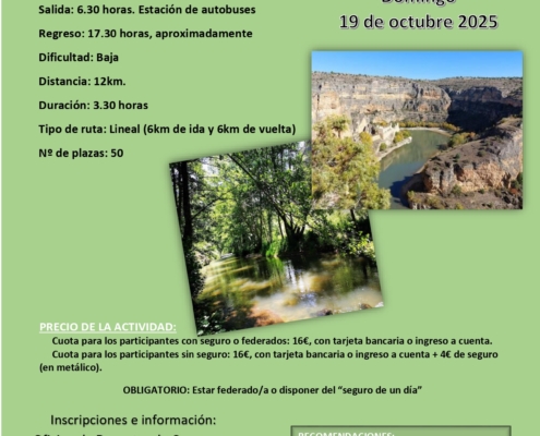 El Área Municipal de Deportes del Ayuntamiento de Consuegra organiza la siguiente ruta senderista, Ruta Senderista "HOCES DEL DURATÓN - SEPÚLVEDA" Domingo 19 de octubre de 2025