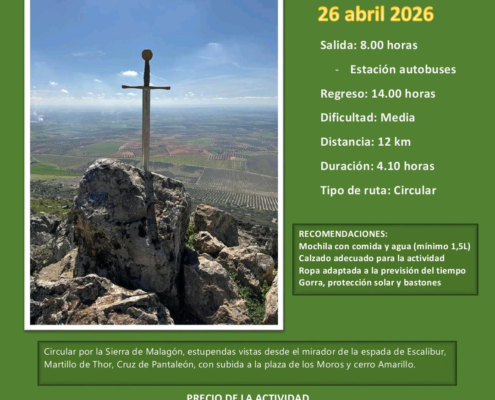 El Área Municipal de Deportes del Ayuntamiento de Consuegra organiza la siguiente ruta senderista, Ruta Senderista "SIERRA DE MALAGÓN" (Ciudad Real). Domingo 26 de abril de 2026