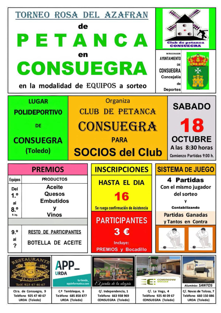 El Club de Petanca Consuegra presenta nuevo torneo con motivo de la LXIII Fiesta Rosa del Azafrán 2025.