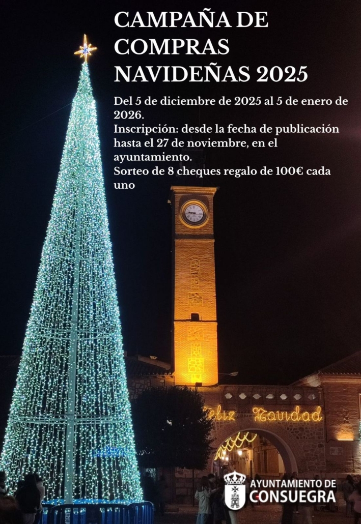 El Ayuntamiento de Consuegra presenta la decimoquinta edición de la Campaña de Compras Navideñas 2025/2026.